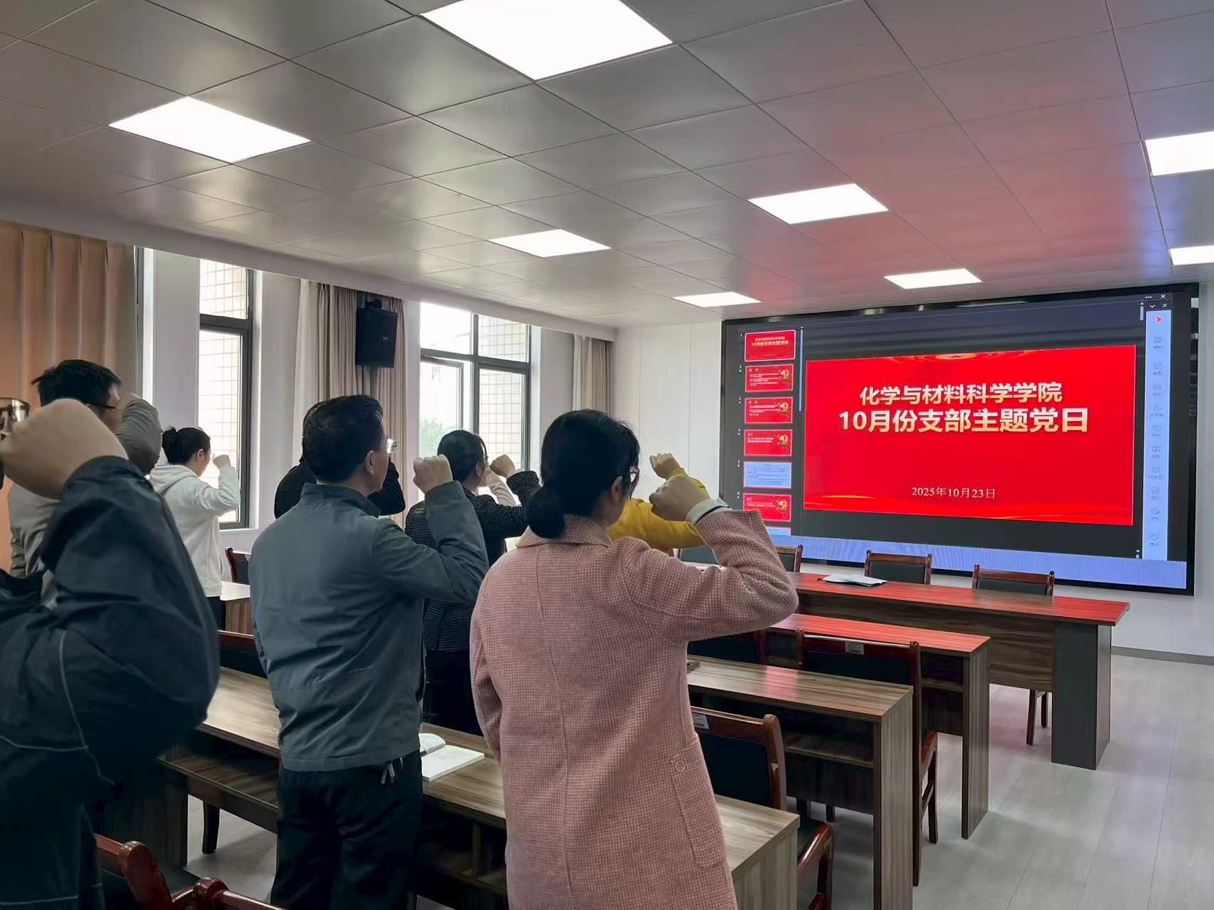 精神传承与价值引领模块中,党员们通过观看历史纪录片《伟大胜利》、重温入党誓词,从抗战精神中汲取奋进力量,明确要教育引导青年学子铭记历史、珍爱和平,培养具有家国情怀的新时代科学家;同时,通过学习习近平总书记关于妇女儿童和妇联工作的重要论述,邀请公司女教授代表分享经验,强调女性科技工作者在科技创新和人才培养中的半边天作用。