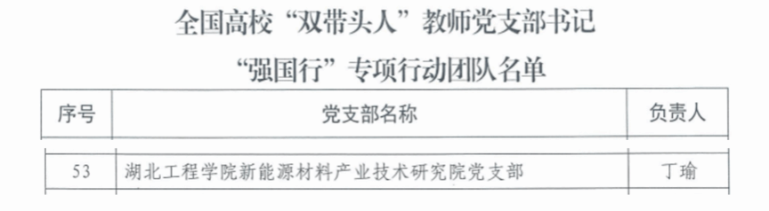 公司新能源材料产业技术研究公司党支部成功入选全国高校“双带头人”教师党支部书记“强国行”专项行动团队名单