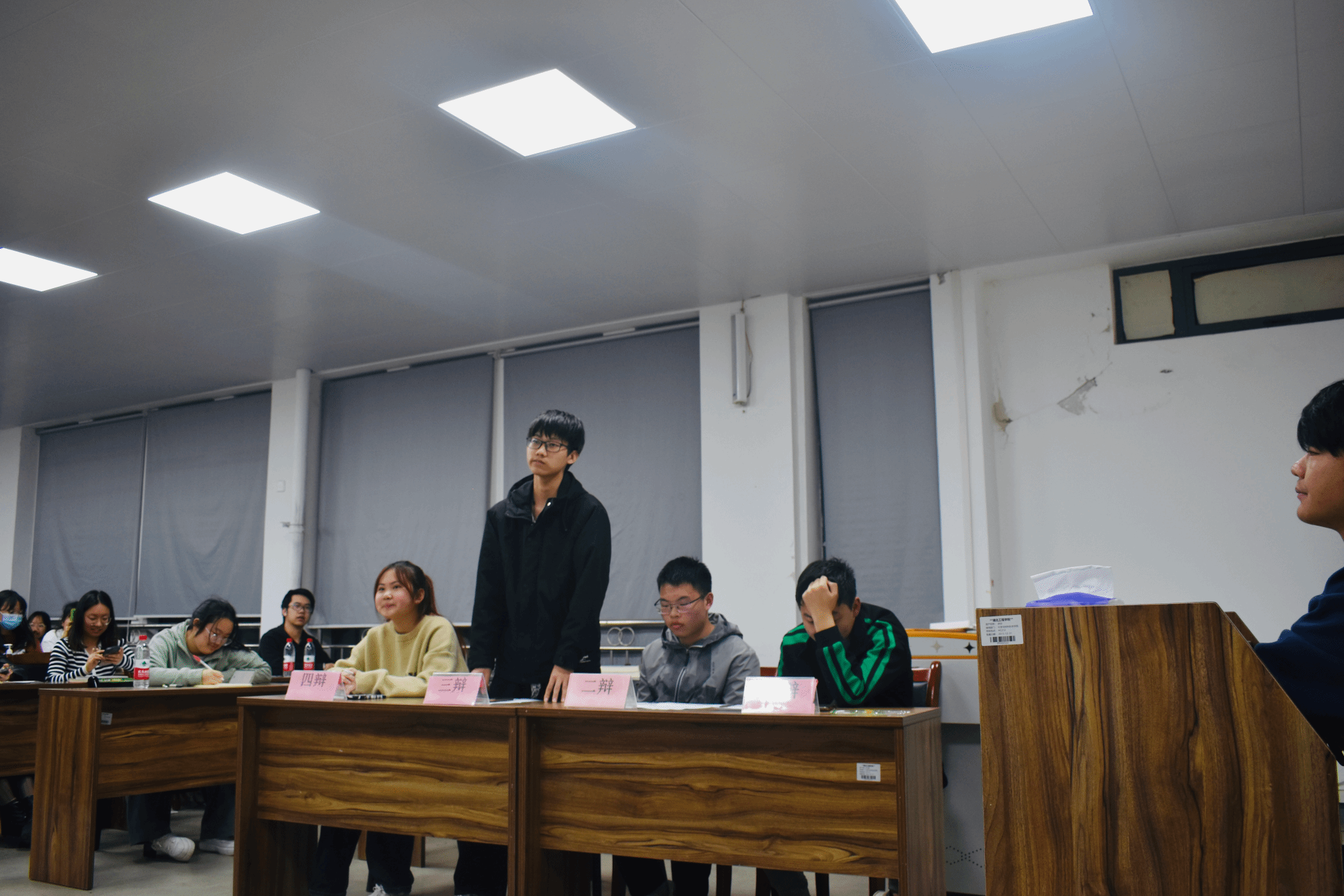 正方(22-142班)辩题为“内部安全比外部安全更重要”,反方(21-141班)辩题为“外部安全比内部安全更重要”。正方和反方各4名辩手结合当前的国际国内形势,通过摆事实、讲道理、列数据等方式阐述本方的观点。双方辩手针锋相对、各显才学,有理有据的观点辩论让每名同学感到国家安全并不遥远,而是与我们息息相关。