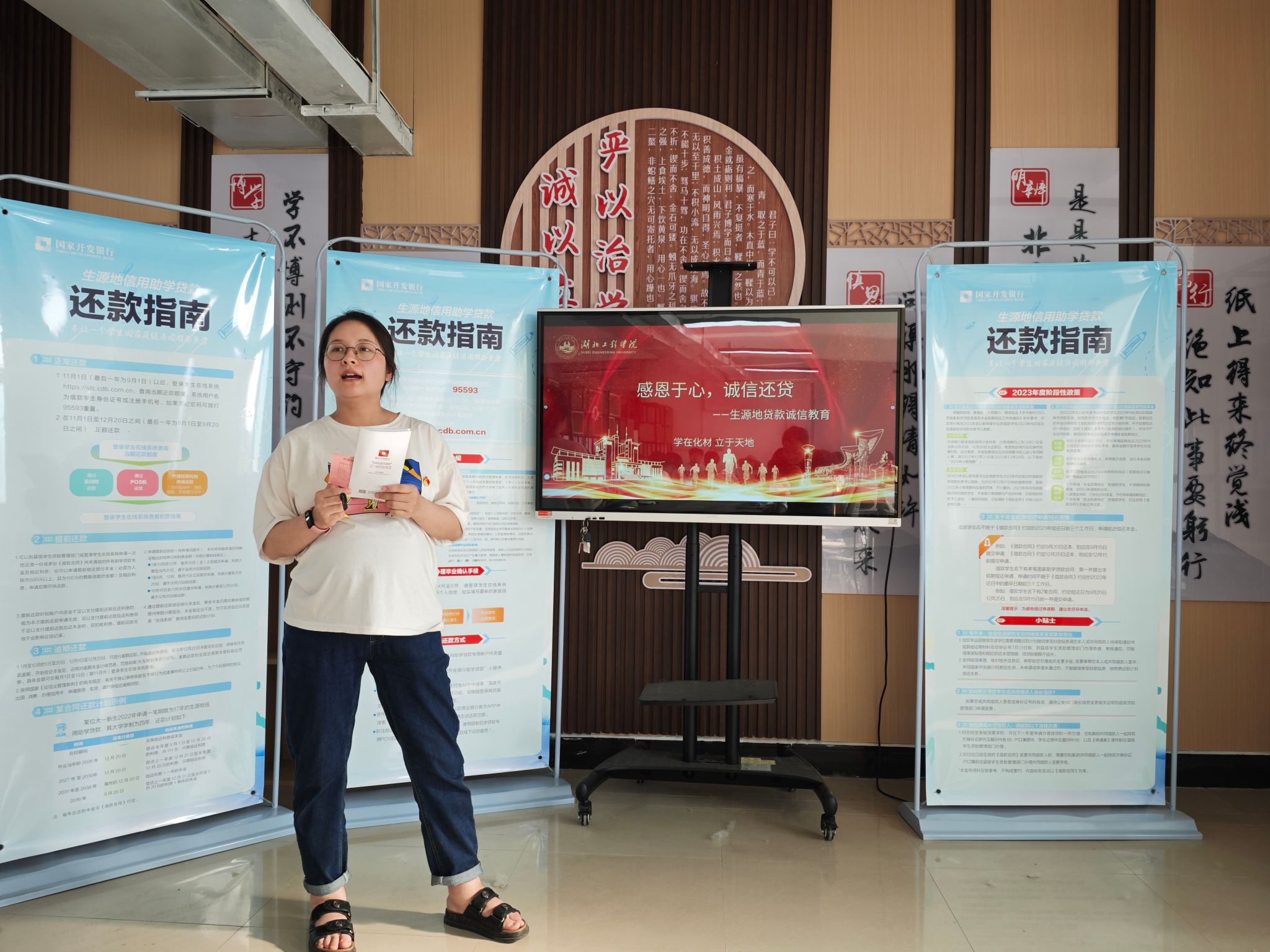 刘谢香详细地讲解了什么是生源地贷款、如何申请生源地贷款、贷款注意事项和如何还款,并提醒员工要感恩国家和社会各界的关爱,树立远大理想,一定要按约还贷,尤其是毕业生,要注重建立起良好的个人信用,强调要“感恩于心,诚信还贷”。
