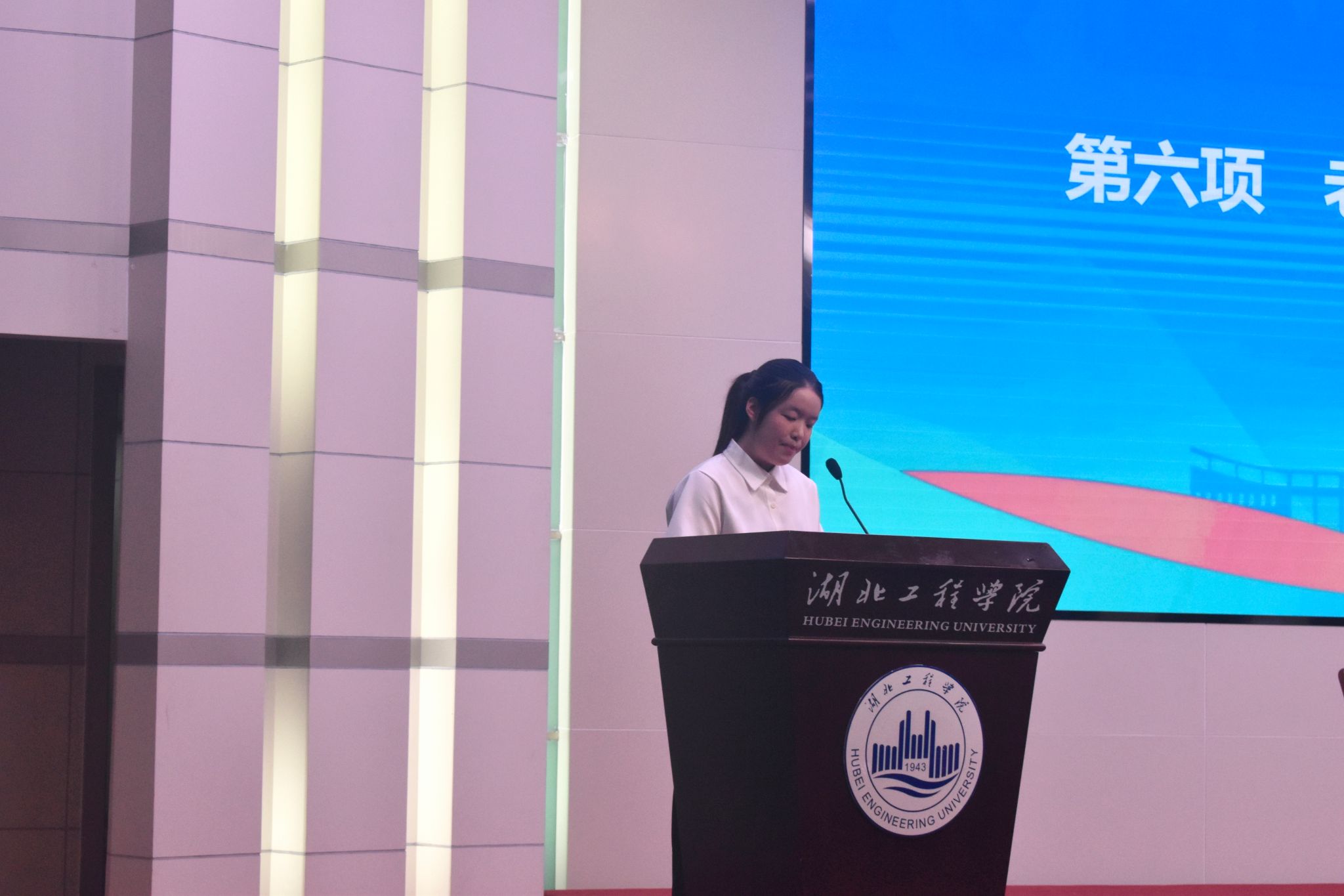 2024级化学专业员工张余鑫代表新生发言。她分享了来校报到后对湖工的真切感受以及对未来的规划与思考。她倡议2024级新生,一是作为新时代代老员工,应怀坦荡襟怀、正直做人、正派做事、诚实求学,踏实走好求学之路; 二要坚定信念,勇往直前,找到生活中的“催化剂”,翻越看似难以逾越的山。最后她呼吁,我们要扛起时代大旗,争做“高扬旗帜、卓越领航”的化材人!