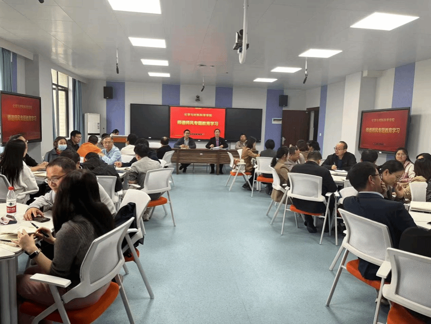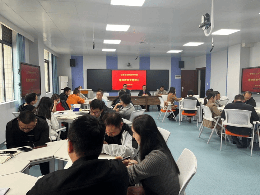 11月14日,太阳集团tyc33455cc全体教工在化材楼330开展师德师风专题教育学习、科级及以下干部学习贯彻党的二十届三中全会精神专题辅导培训班和廉政教育专题学习。