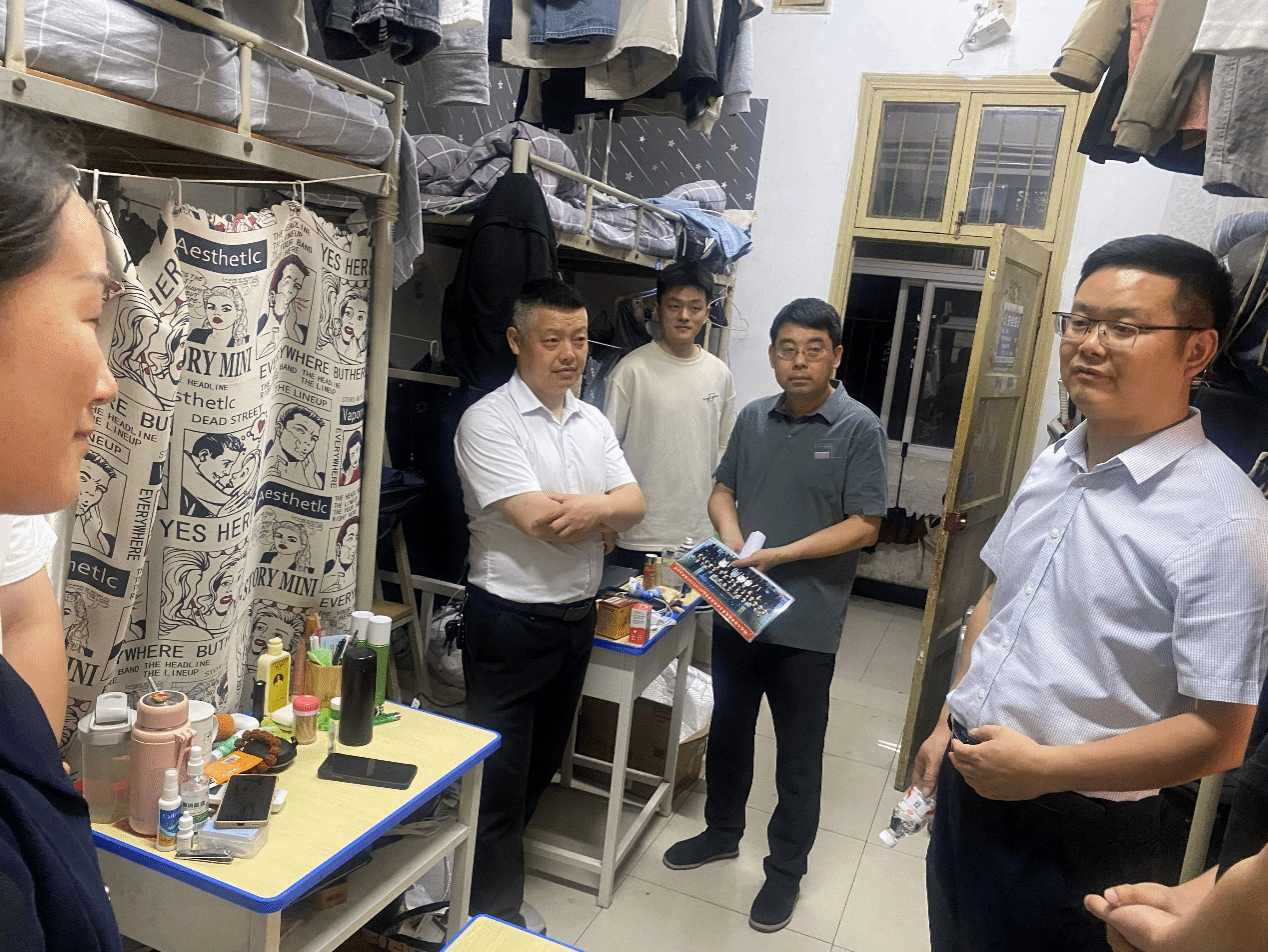 为深入贯彻 “三全育人” 理念,切实加强员工教育管理与服务,全面掌握员工学习生活状况,5月13日晚,太阳集团tyc33455cc经理王锋、党委书记徐明霞、副经理颜永斌、党委副书记胡远强及各年级辅导员,深入员工寝室开展走访调研与安全检查工作。