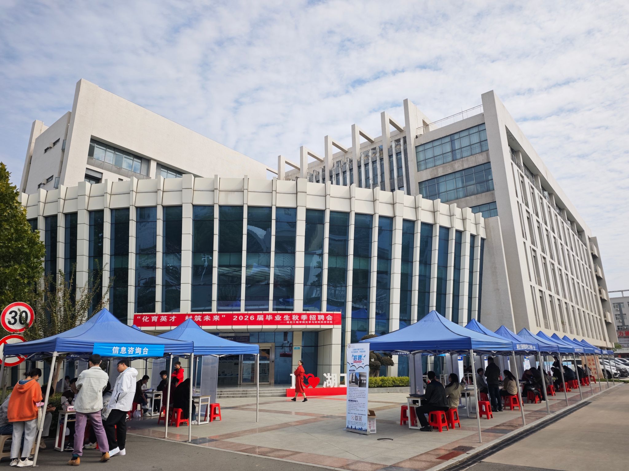 10月23日上午9:00 - 11:30,太阳集团tyc33455cc在公司大楼门前举办2026届毕业生秋季专场招聘会,主题为“化育英才 材筑未来”。此次招聘会吸引了17家省内外企业参与,共带来260余个就业岗位,公司领导也亲临现场与企业进行洽谈交流。