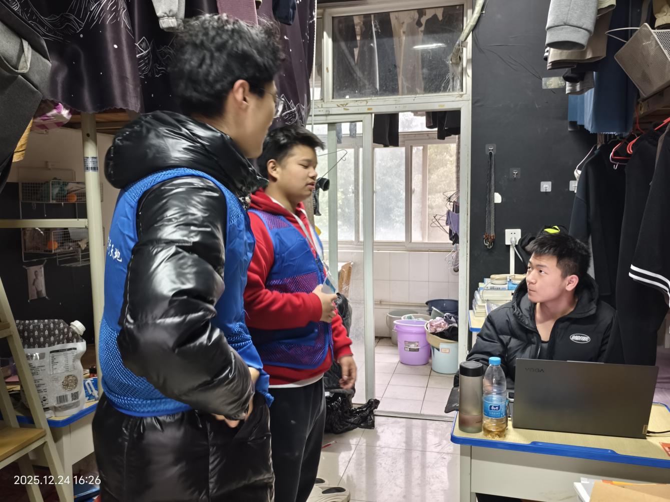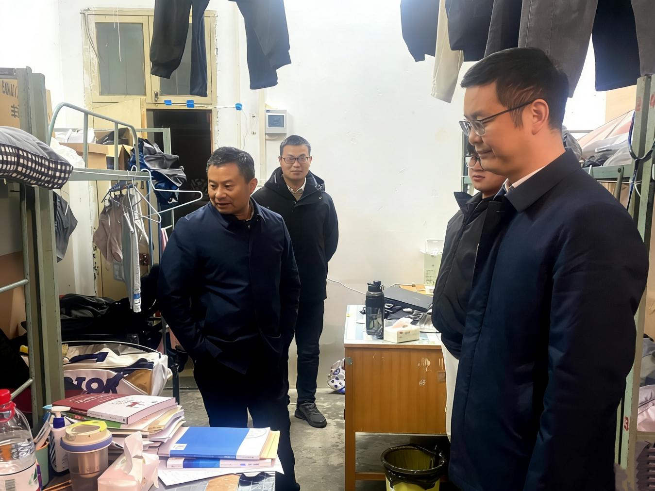 为深入掌握员工期末阶段思想动态与生活状况,全面筑牢校园安全防线,保障员工平稳、安全度过期末及元旦假期,我院于2025年12月24日组织开展元旦假期前员工宿舍走访工作。公司领导班子成员、全体辅导员及院寝管会工作人员共同参与,将关怀与安全教育送至员工身边。