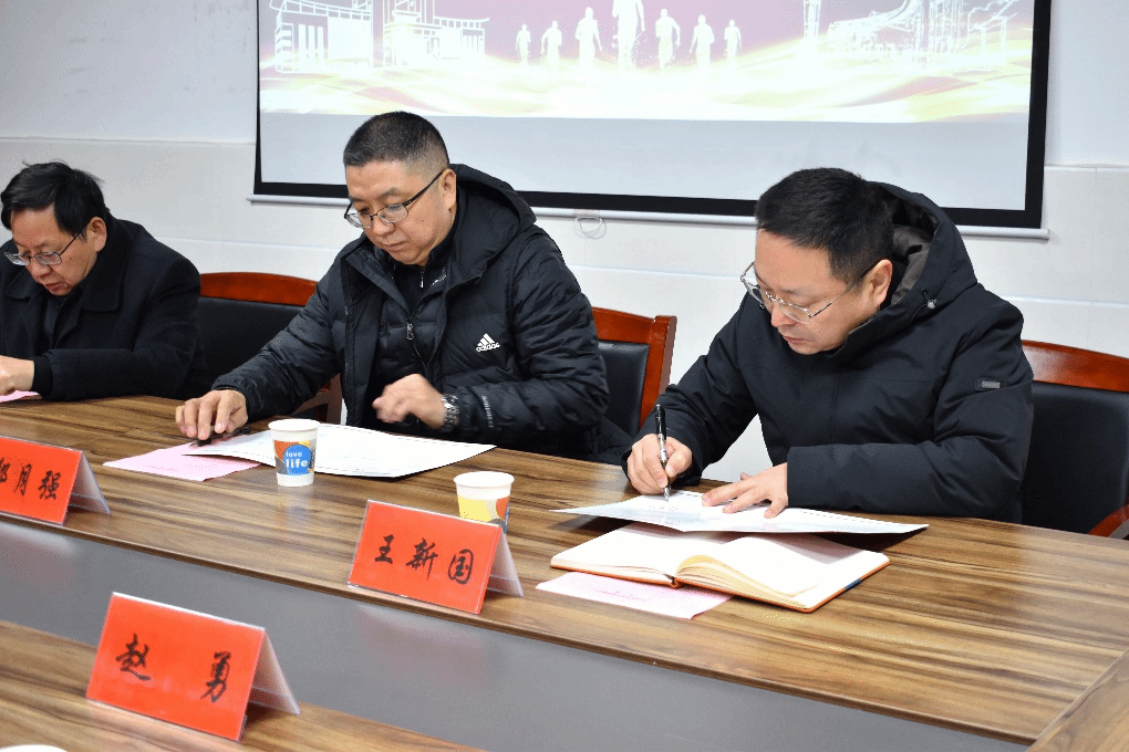 员工办主任王新国与郑月强员工签订玖久奖学金续捐协议(续捐10万元)。