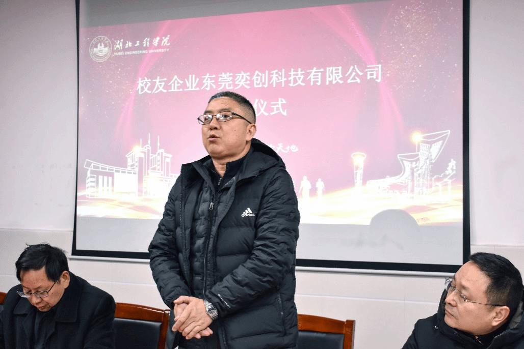 王锋经理在致辞中感谢郑月强员工对母校捐赠的拳拳感恩之心,并介绍了公司目前的发展概况。